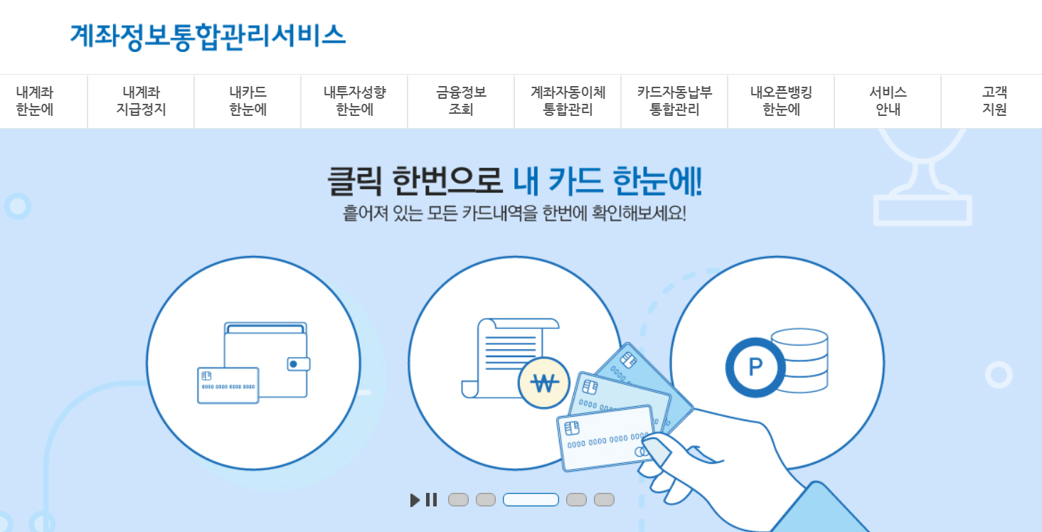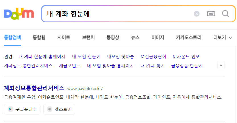 1. 포털 검색창에 내 계좌 한눈에, 어카운트 인포, 페이인포 등 검색