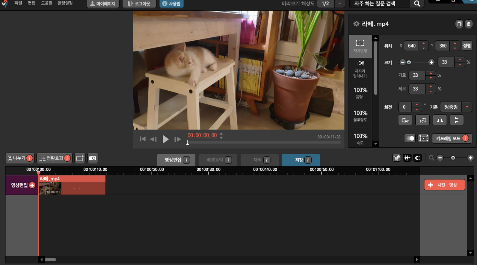 저장된 영상이나 사진 파일을 불러온 후 재생 시간을 조절합니다.